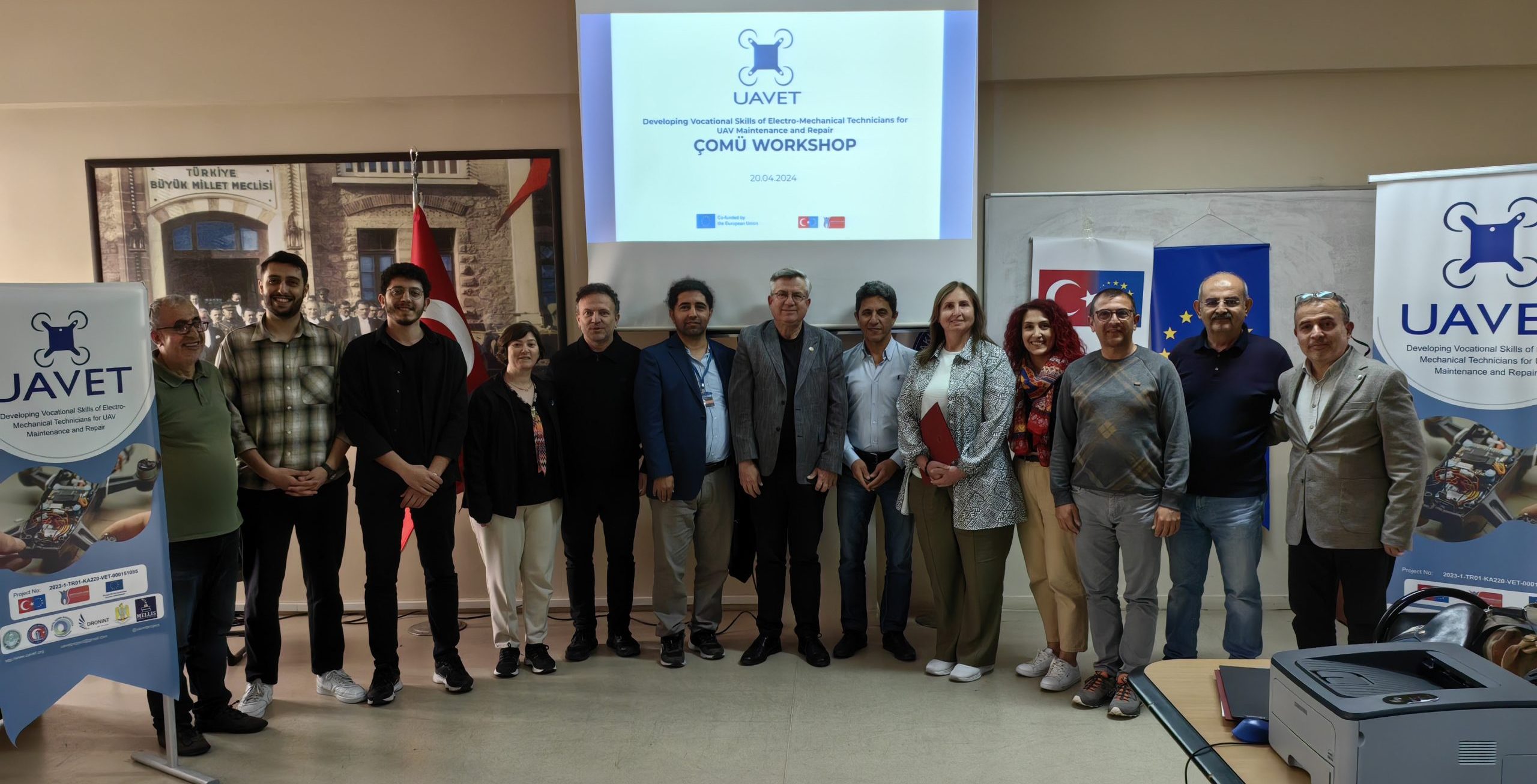 Within the framework of the EU Erasmus+ KA220-VET programme carried out with the support of the National Agency, Çanakkale Onsekiz Mart University successfully completed the first workshop that will contribute to the determination of occupational standards of technicians within the scope of the project titled ‘Development of Vocational Skills of Electromechanical Technicians for Unmanned Aircraft Maintenance and Repair’. The project, numbered 2023-1-TR01-KA220-VET-000151085, is coordinated by Balıkesir University in cooperation with Çanakkale Onsekiz Mart University and Mellis Education Technologies.
