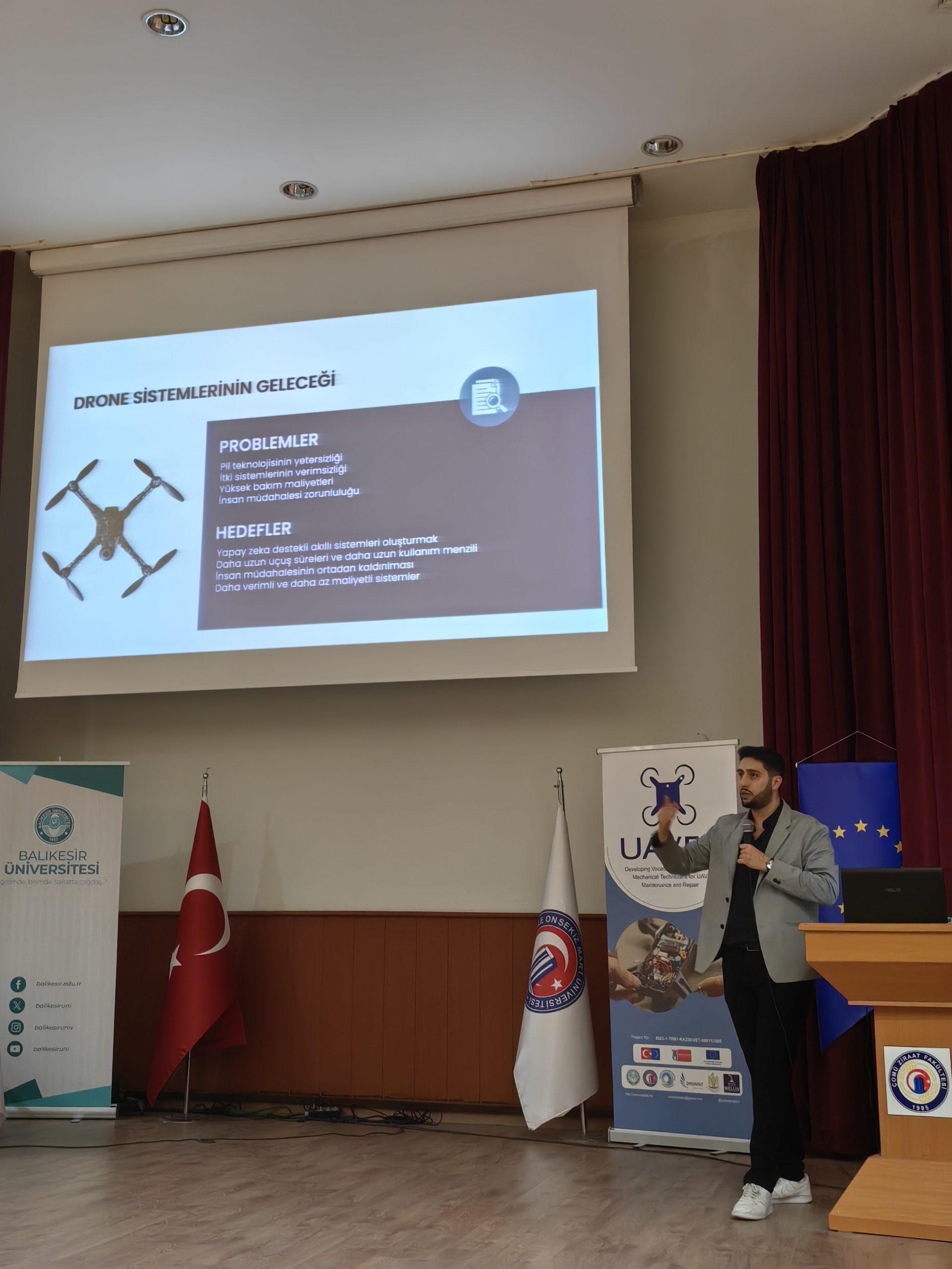 On the first day of the workshop, Prof Dr Cafer Türkmen made a presentation titled ‘The Rise of Autonomous Vehicles: Revolution in Air, Land and Maritime Transportation’, Prof. Dr. Cafer Türkmen made a presentation. Afterwards, Assoc. Prof. Dr. Seyhun Durmuş gave information on ‘Comparative Evaluation of Developments in Drone Components and Control Software’, and Assoc. Prof. Dr. Gültekin Basmacı from Mehmet Akif Ersoy University gave information on ‘Drone Design and Construction’. Assoc. Prof. Ünal Battal from Eskişehir Technical University made presentations on the UAV market and financing, and Zülhice Gözcan from Trakya University on the cyber security aspects of autonomous vehicle technologies and their importance for technicians.
